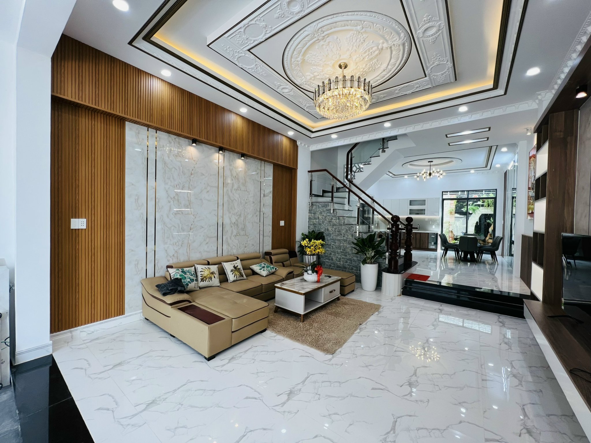 -Cấu trúc: 1 trệt 2 lầu, sân thượng gồm 1 gaza xe hơi,1 phòng khách, 1 phòng bếp, 4 phòng ngủ, 5 Wc, 1 phòng thờ, sân thượng trước sau.