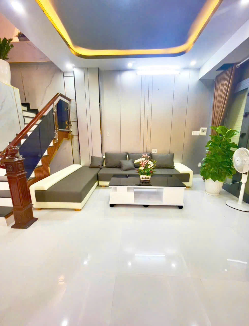 -Cấu trúc: Nhà 1 trệt 2 lầu, sân thượng. Gồm 1 phòng khách, 1 phòng bếp, 4 phòng ngủ, 5 wc, nhà thiết kế đẹp.